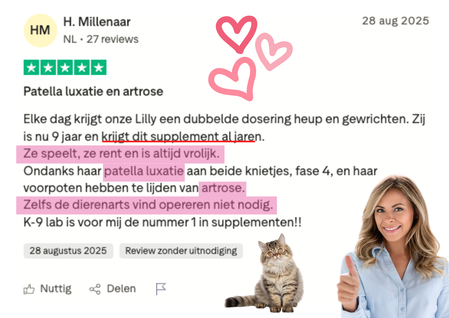 Bij K9 Laboratories geloven we in wat we maken. Daarom bieden we een 90-dagen resultaatsgarantie: zie je geen verschil bij jouw kat, dan krijg je je aankoopbedrag terug.*