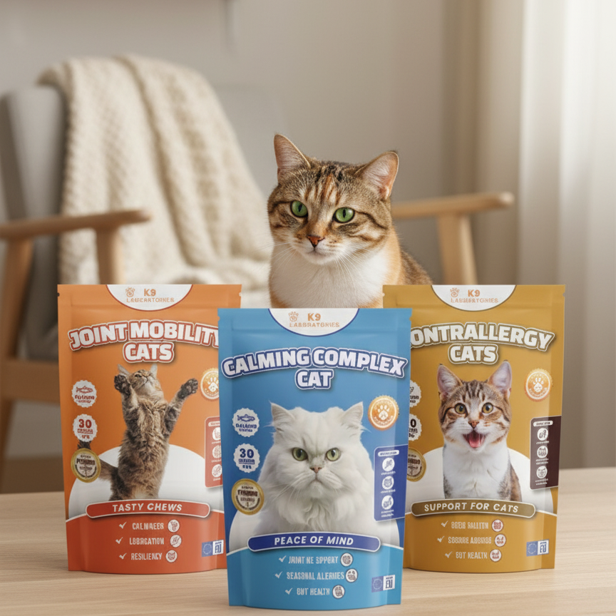 Of jouw kat nu wat extra rust, soepele gewrichten of een gezonde huid en vacht nodig heeft: bij K9 Laboratories vind je ondersteuning die past bij haar unieke behoeften.