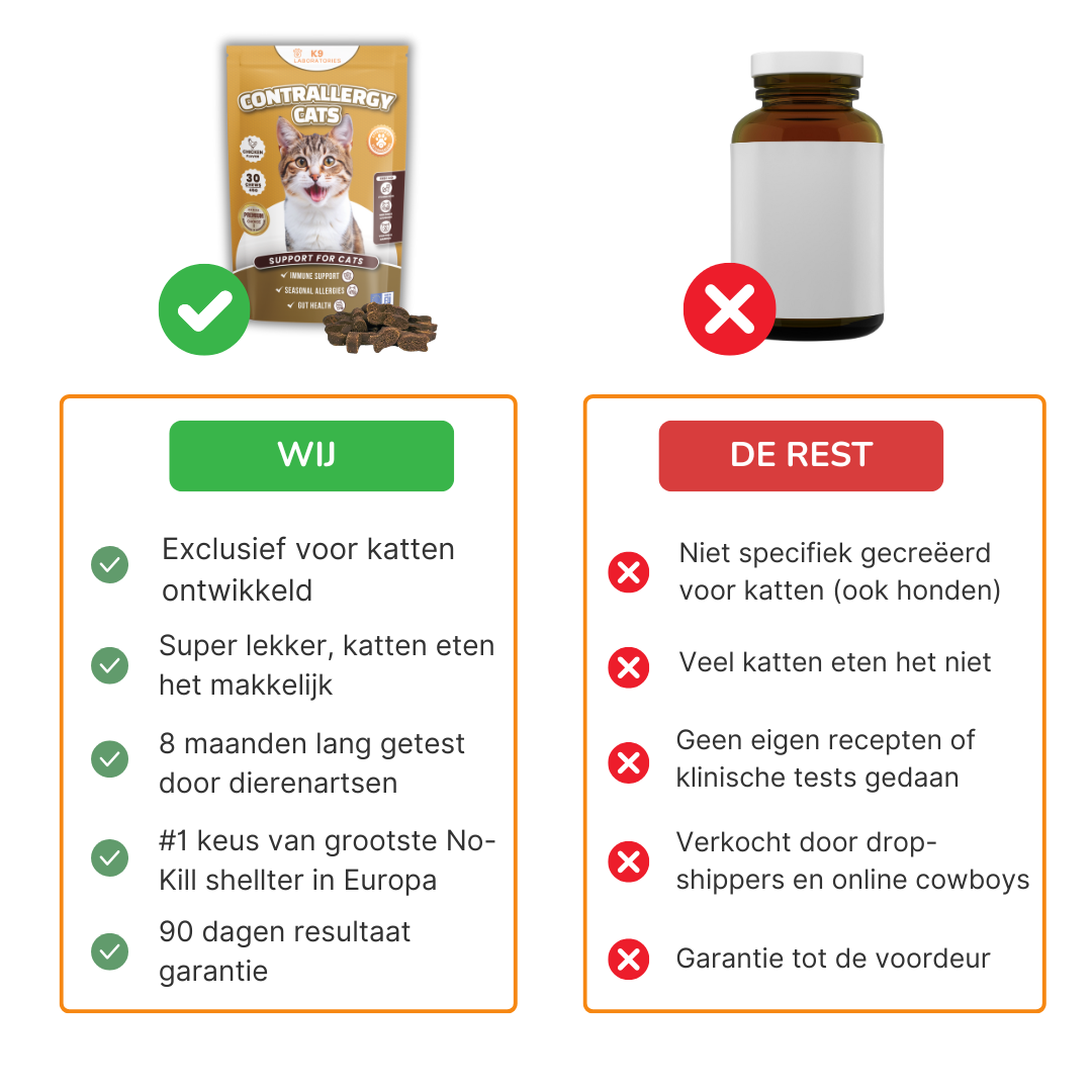 Contrallergy is speciaal ontwikkeld voor katten die overmatig krabben, bijten, of te maken hebben met hotspots, tranende oogjes en niezen.