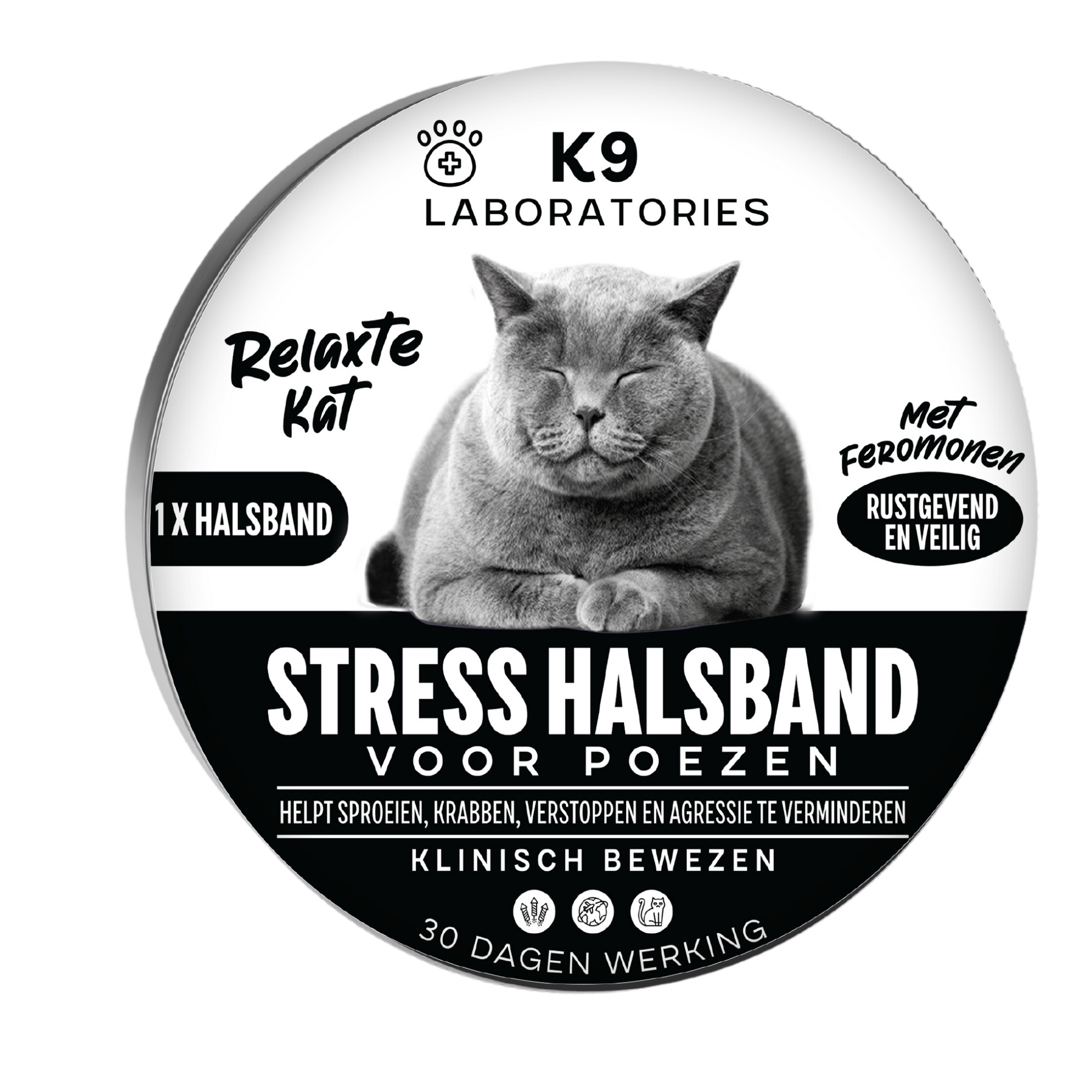 De anti-stresshalsband van K9 Laboratories helpt je kat dagelijks om te gaan met spanning en veranderingen in huis. De feromonen verspreiden continu een geruststellend signaal dat katten herkennen, waardoor ze zich veiliger en meer op hun gemak voelen.